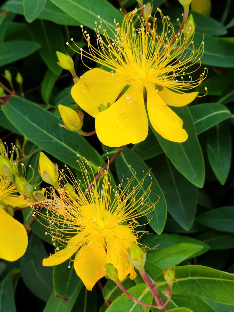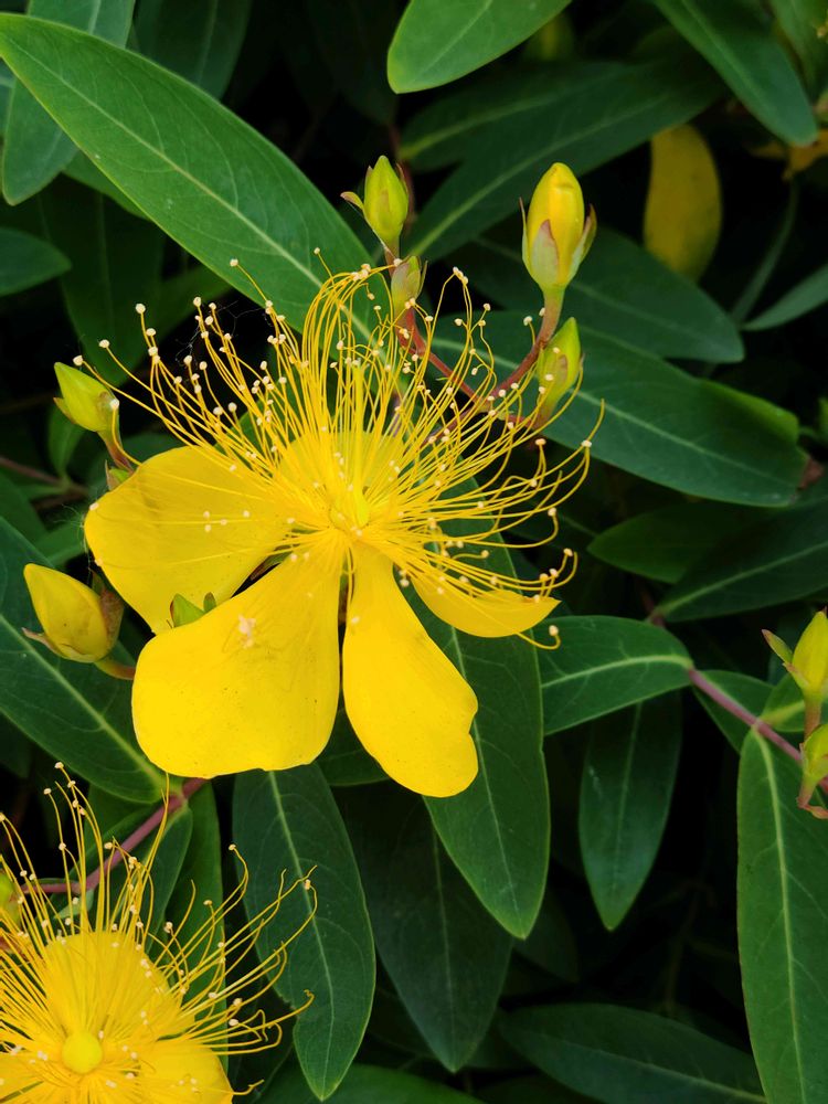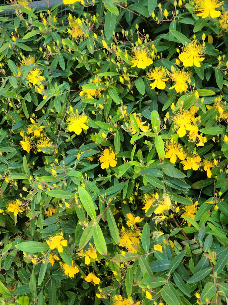 シベの美しい黄色のお花ビヨウヤナギ、みどりの葉っぱに映えてとても素敵です❣️💚💛💚💛
