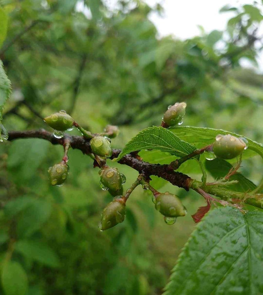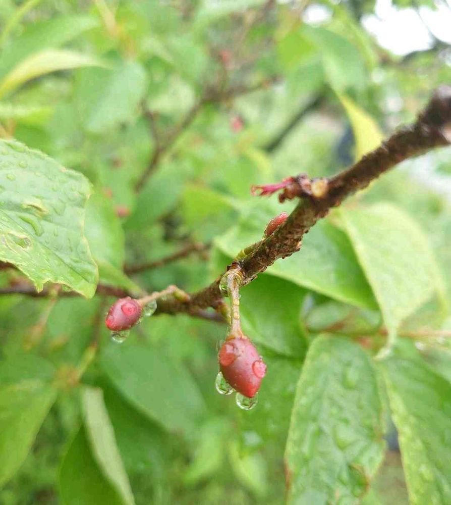 ①②4月末に写した木の実は西洋実桜の実でした。このあと丸くなったのかな〜?🍒🍒🍒🍒🍒