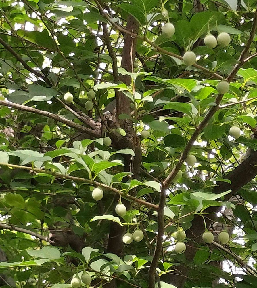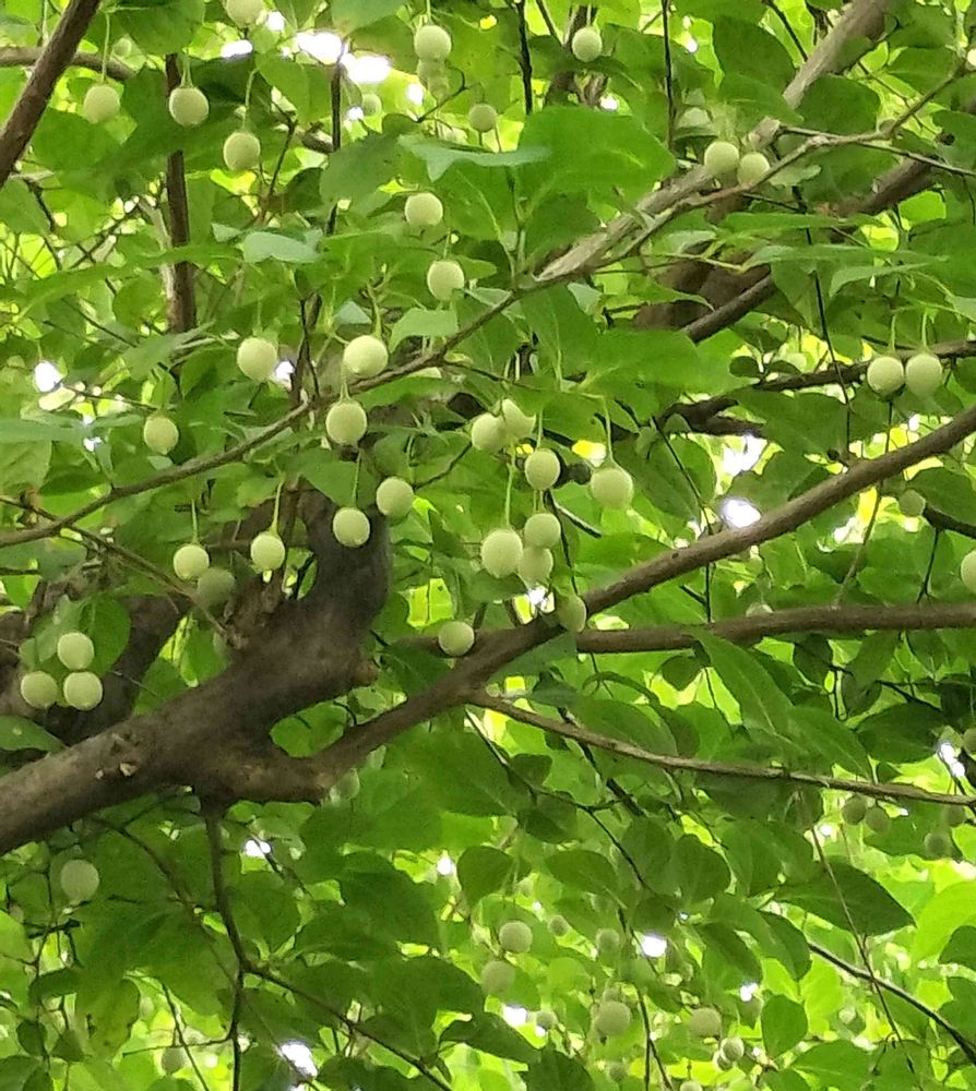 ③④若葉が美しかったエゴノキ。沢山の白い花は沢山の実になってました😄🟢🟢🟢🟢🟢実も可愛いですね〜‼