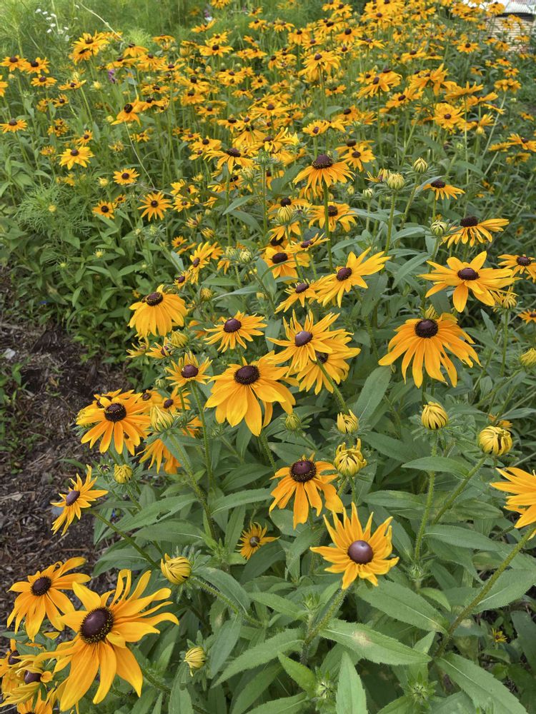 我が家の溢れ種からのルドベキア畑🌼黄色い花は映えるね😊