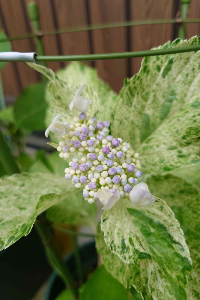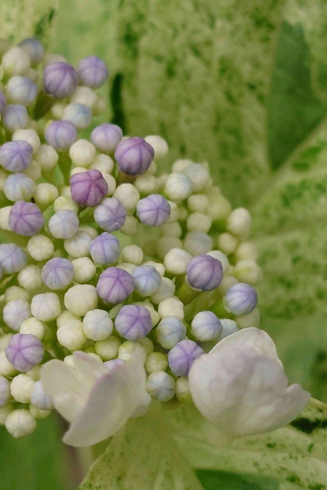 斑入りの紫陽花の蕾がぷっくりしてきました😍🩵🤍💚