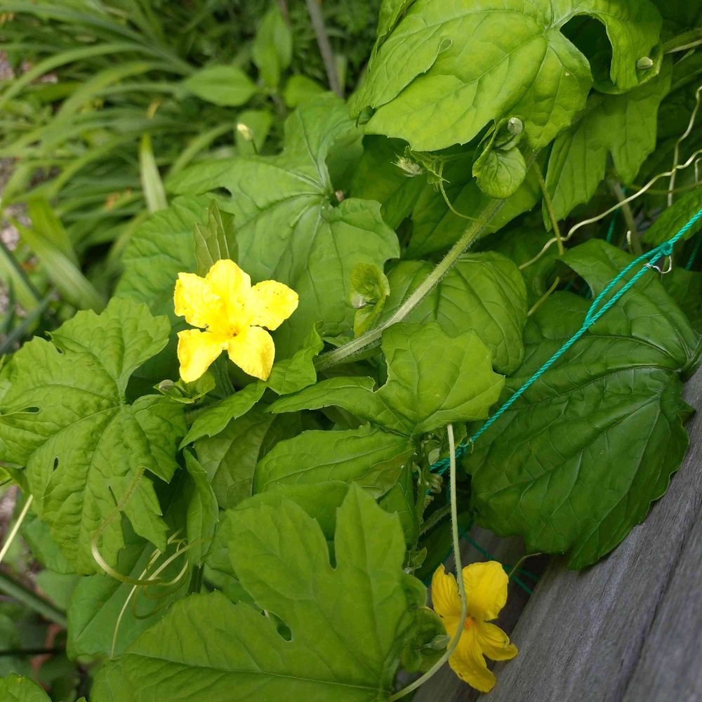 雄花ばかりで雌花がやっと咲いたのが大雨の6/18…実がなればいいのですが〜