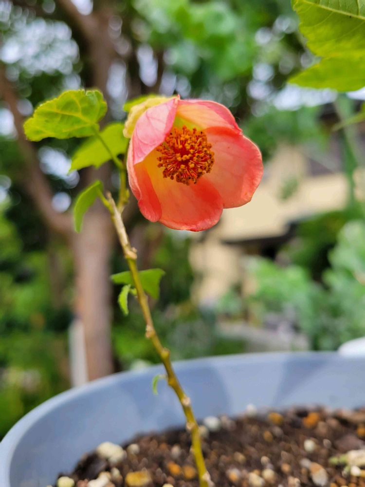 この花はアブチロンと言って、ボケに少し似ているけどブラジル産の熱帯花木なんです🎵