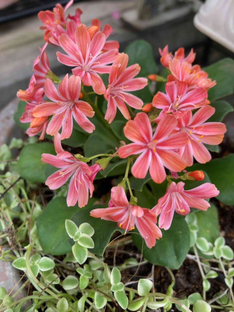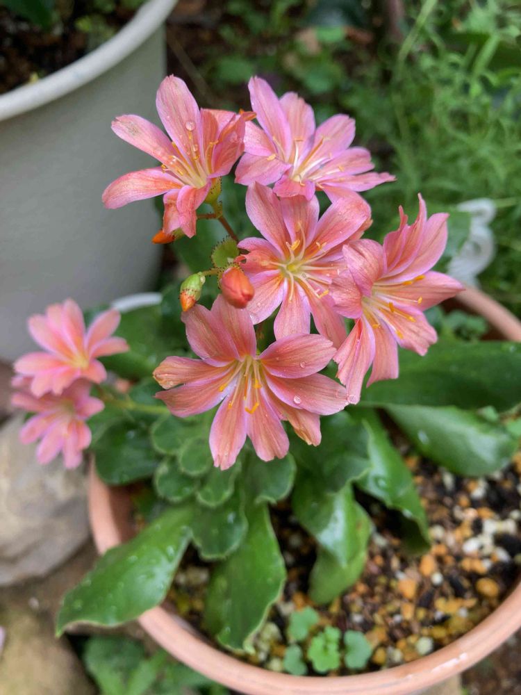 今まで雨の当たらない軒下で大事に育てても⭐️になり上手く育てられなかったレウィシア😩2鉢を思い切って雨ざらしの場所へ移動🪴🪴とても元気に育ってる気がします😙♪