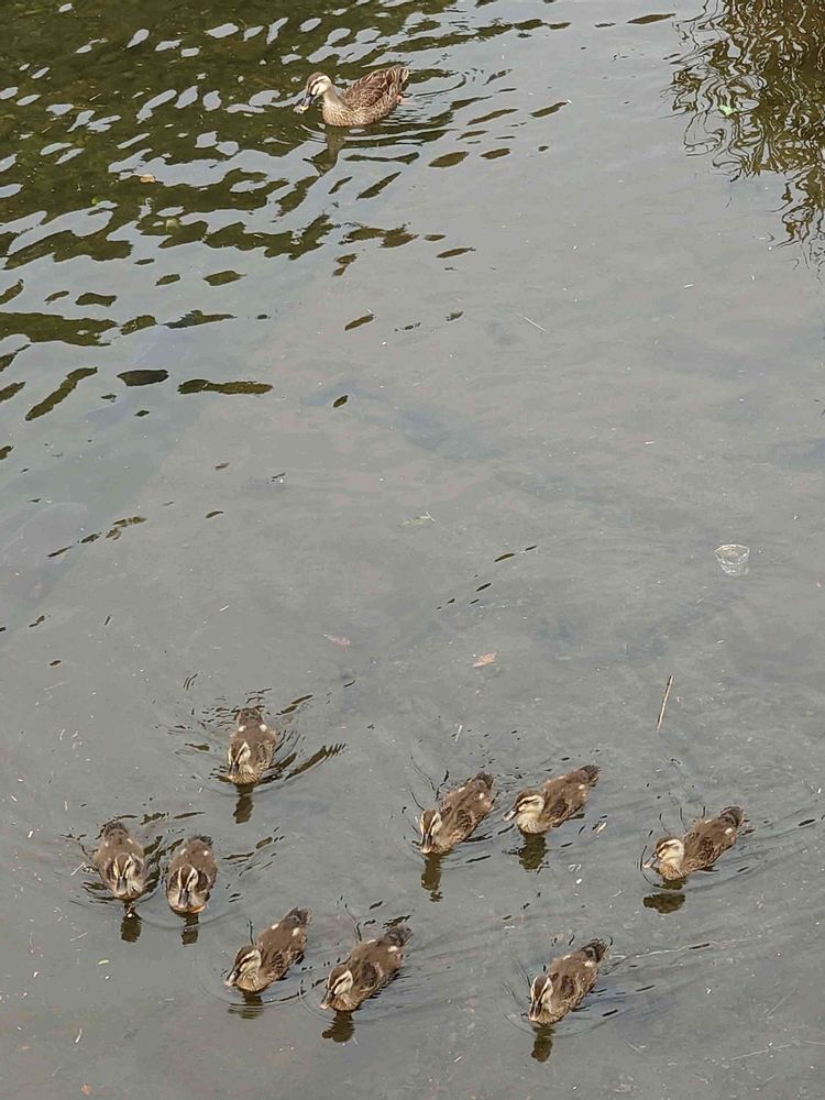 子ガモはなんと9羽🦆 かわゆいー🤭