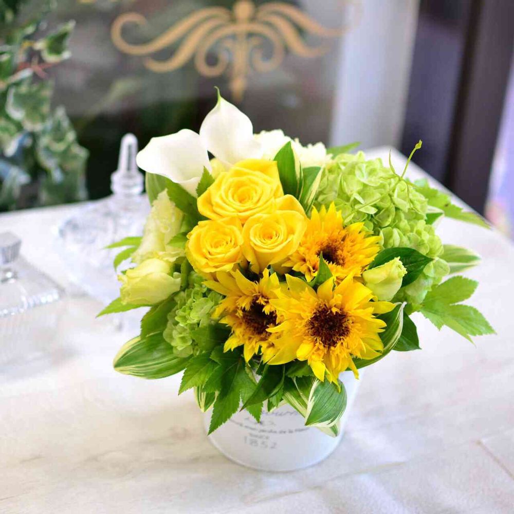 大好きな向日葵とバラとカラーの共演💓何て素敵なんでしょう🌻