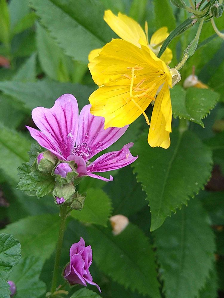 ⑤ ゼニアオイとヒルザキツキミソウ黃 仲良し💝