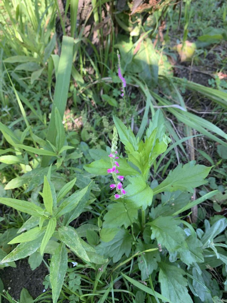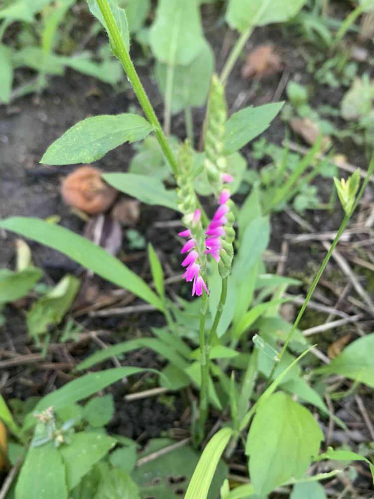 柿の木の下、雑草に混じって、ネジバナが咲いています。