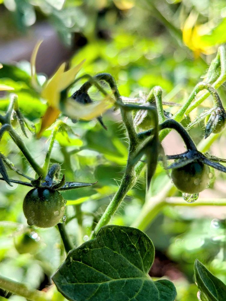 先日(11日)の投稿から10日が経ち プランターのミニトマトに複数の実がなっています✨