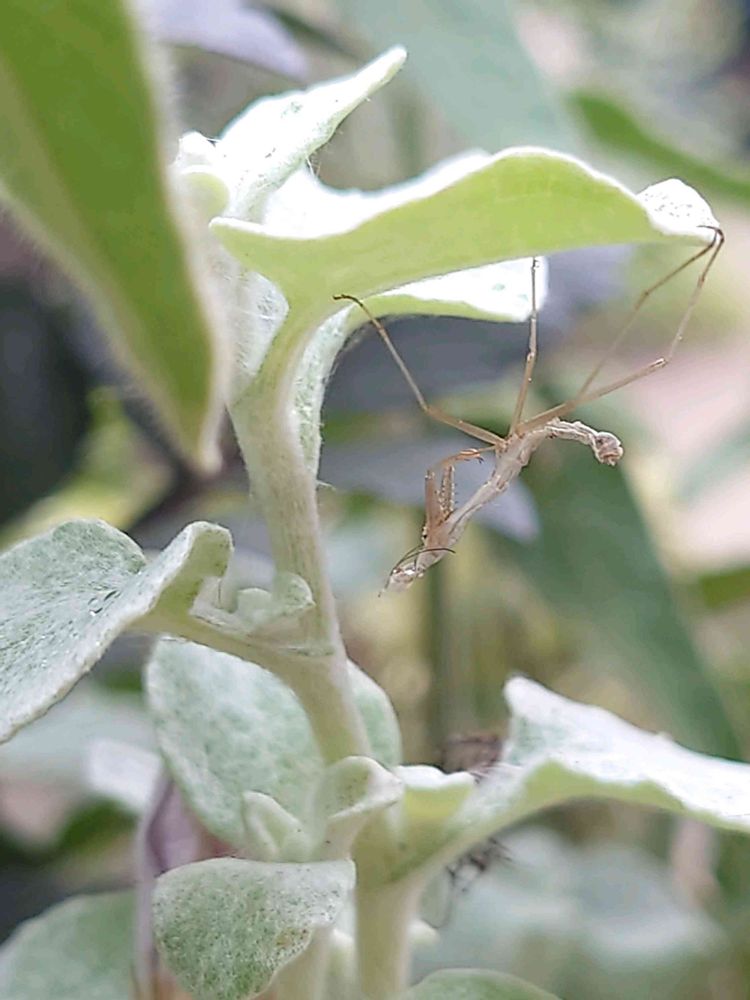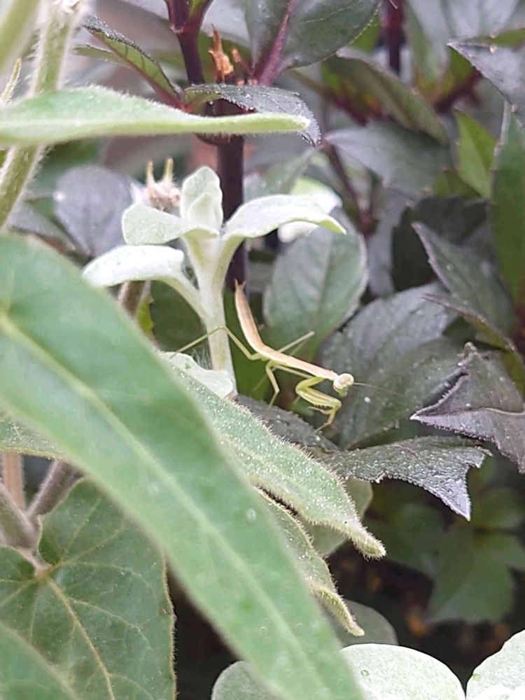 先週寄せ植え作ったときに他の鉢から子カマキリを移したら気に入ってくれたようです