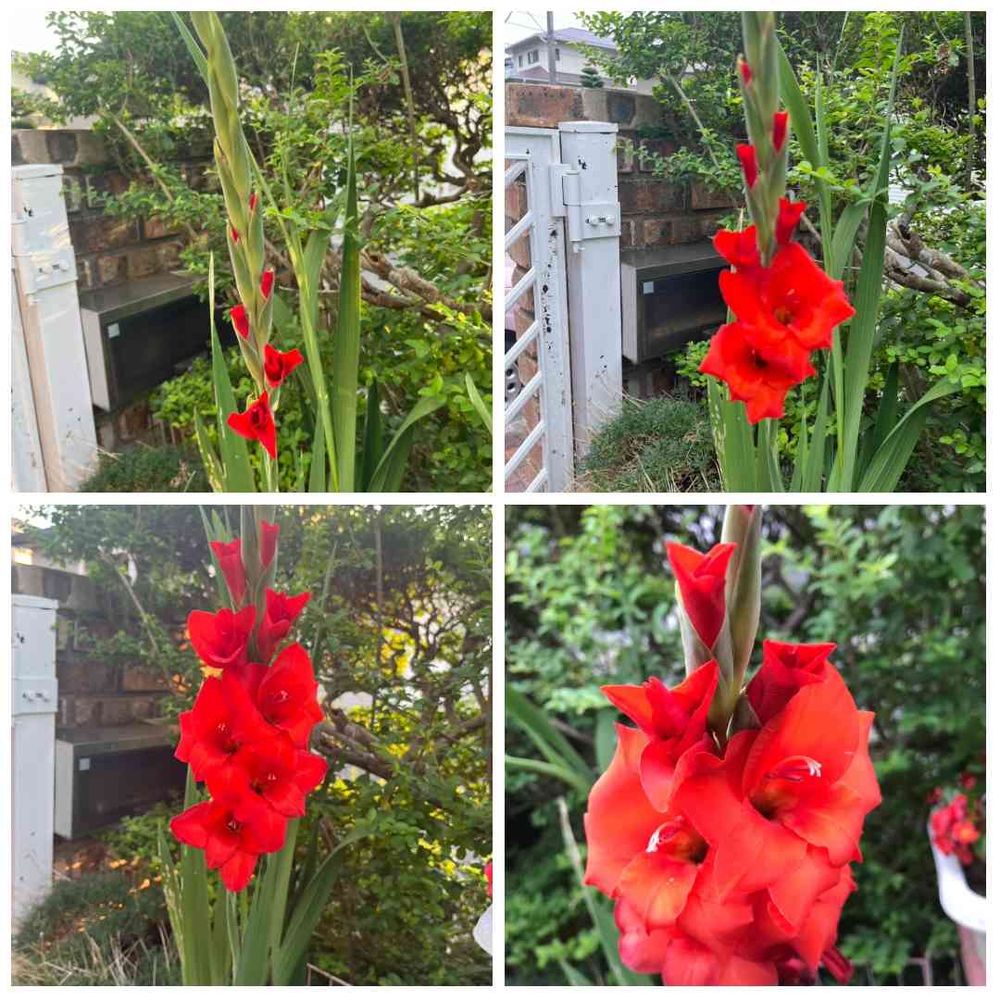 赤いグラジオラスがだんだんお花が咲き出して膨張して大きくなって成長してまーす🎵✨✨✨✨