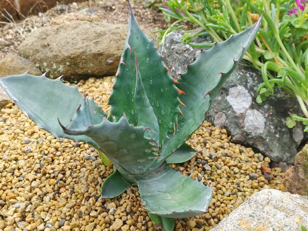 庭作業がしばらくできなかったら、地植えアガベが大きくなってる!