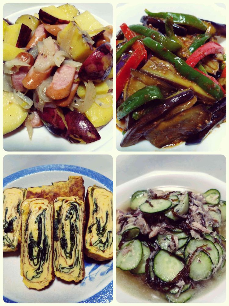 卵やきワカメいり🎵いいなあ🎵ジャーマンポテト🍟おいしそうだ😄いただきまーす🙇
