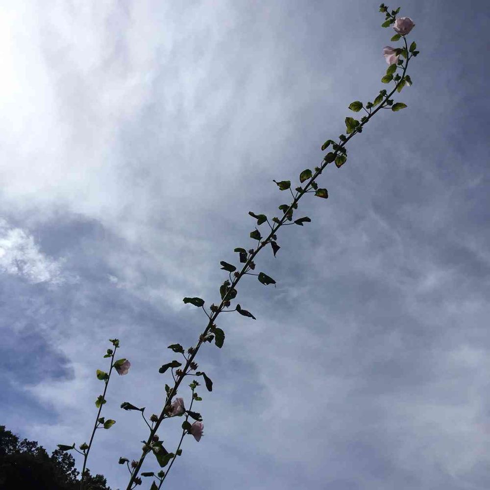 タチアオイが伸びて、倒れてきそうです。3m50cmはありそう。
