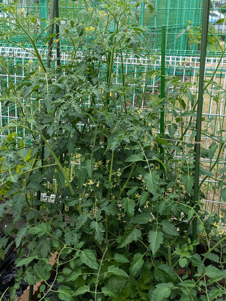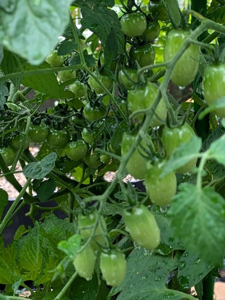 ラグビーボールみたいな品種のミニトマトも今年は作ってます🍅