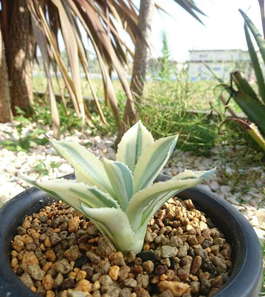斑入りのアガベの子供たちは、葉がそれぞれ、異なるんですね〜。良く考えてみると、そう言えばそうかな、と思いますが、実際拝見すると、不思議な感じがしました!😅