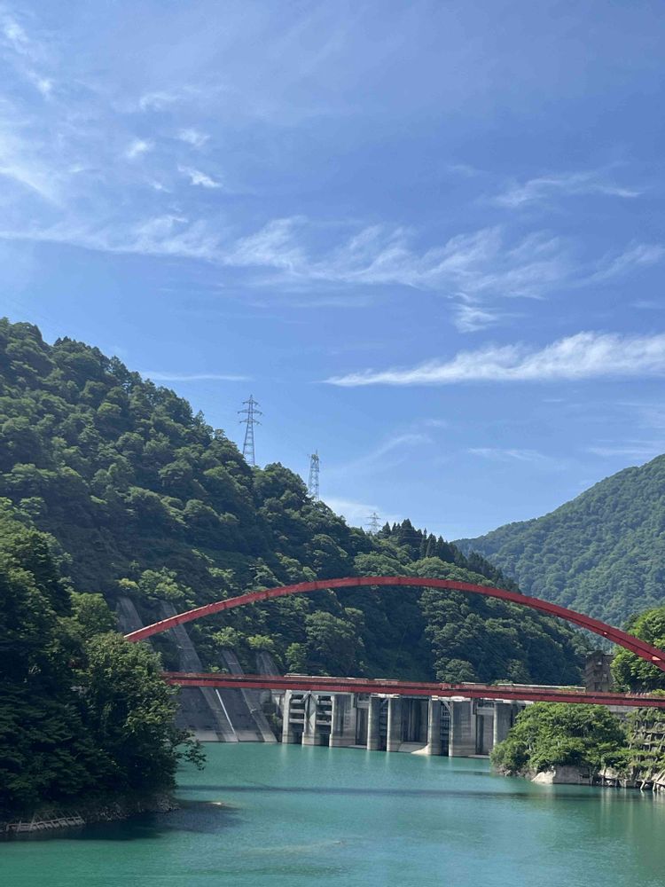 緑に囲まれた連山🏔️と黒部川(ダム湖)へ向かう中