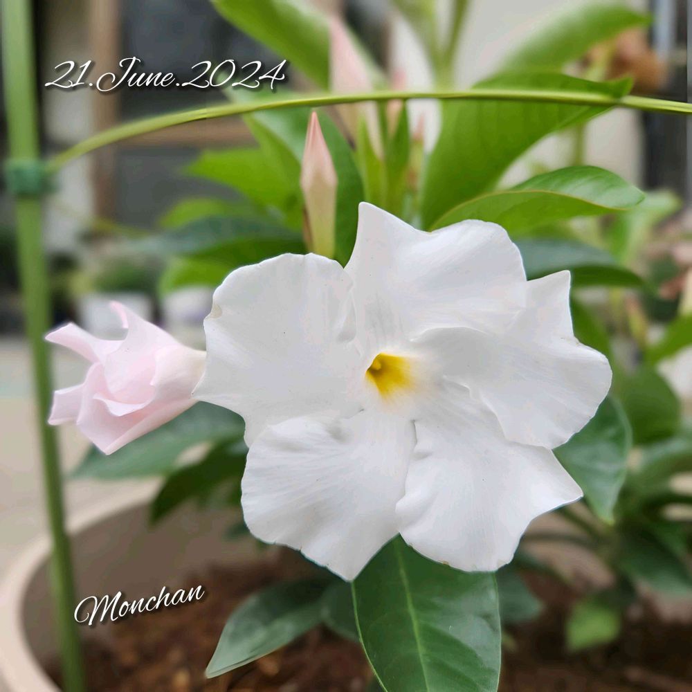 お天気も良かったので、順調に生育🤗お花も1輪開花し、つるも伸びてきました。直径約8cmほど。