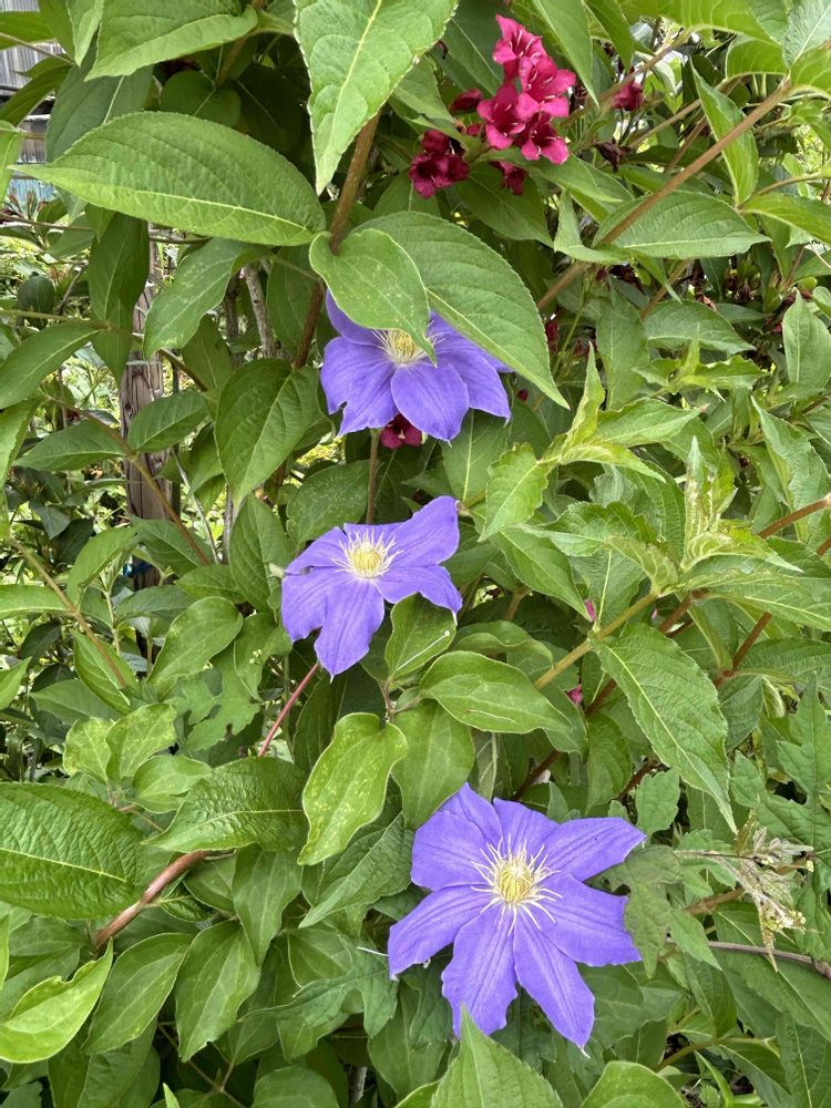 1、2枚目紫のクレマチスは、ウツギの木に絡まって咲いてるのかな🙄