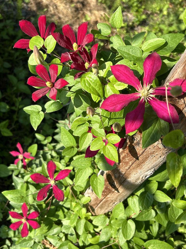 紫と赤のクレマチスも咲き出しました💓💓💓