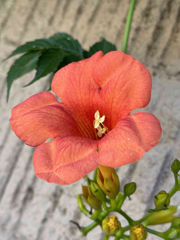 Campsis grandiflora/Campsis. Bignoniaceae. Lamiales. Magnoliopsida. Tracheophyta Commonly called/Chinese trumpet vine, creeper Native to/East Asia:Eastern and southeastern China Symbolism/a fresh start. Zest for life. Untamed beauty *Genus of 2 species of vigorous, woody, climbers *They bear showy, trumpet-shaped or funned-shaped flowers, 2.1/2-3in(6-8cm) long. *The scientific name Campsis derives from the Greek word ‘kampe’ which means ‘bent’ which refers to the branches that bend under the weight of the profusion of the flowers. Photographed 6/20 9:48am 2024 Posted 6/21(Friday) 11:56am 2024