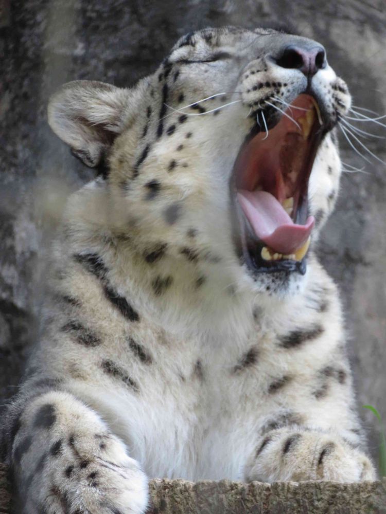 思わずすごいなと口の中を覗き込んだ!! ユキヒョウのコボ4歳くらいかな?