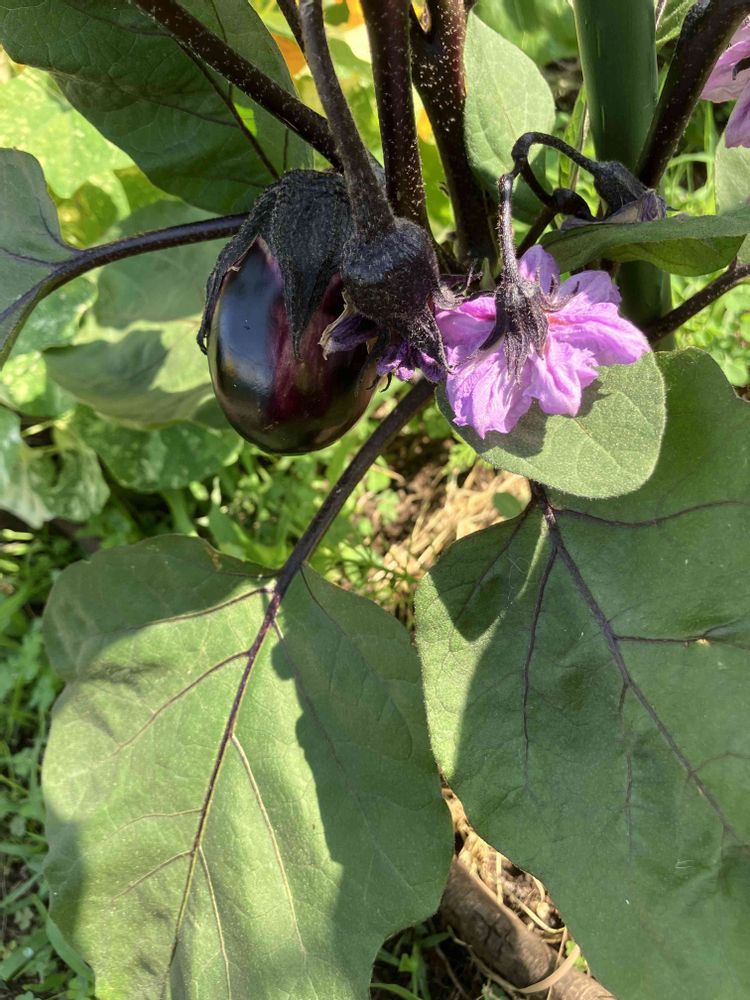 白ナス、ナス、スナップエンドウ、キュウリを収穫しました😄