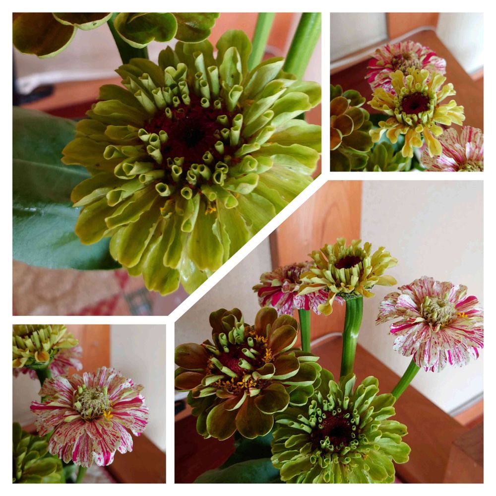 ついさっき友達が持って来てくれたのですが、何とポップな百日草😲