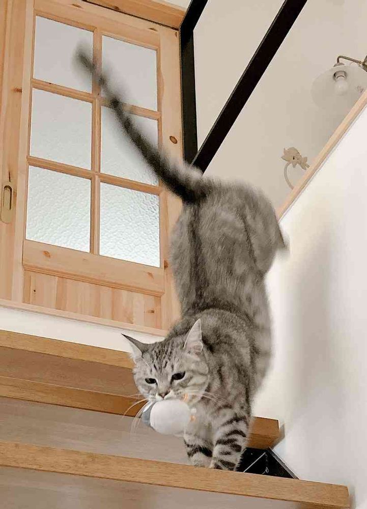 2階に投げて階段を降りて持って来るのがお気に入りの遊び🐱💕