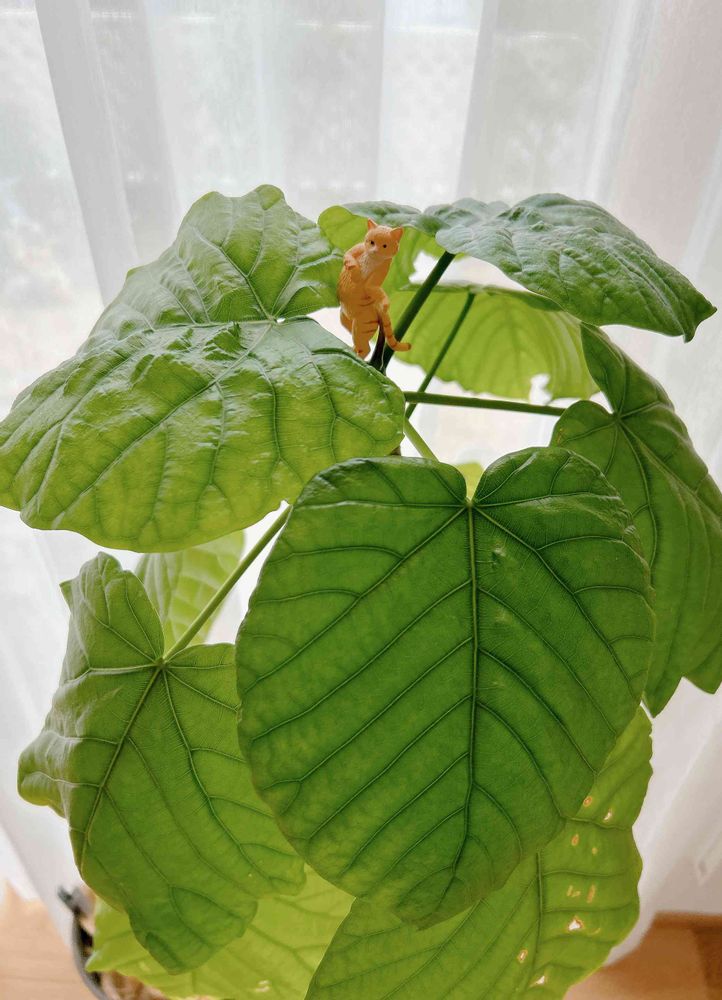 3:フィカスウンベラータにみなみさんにもらった猫フィギュア🐈