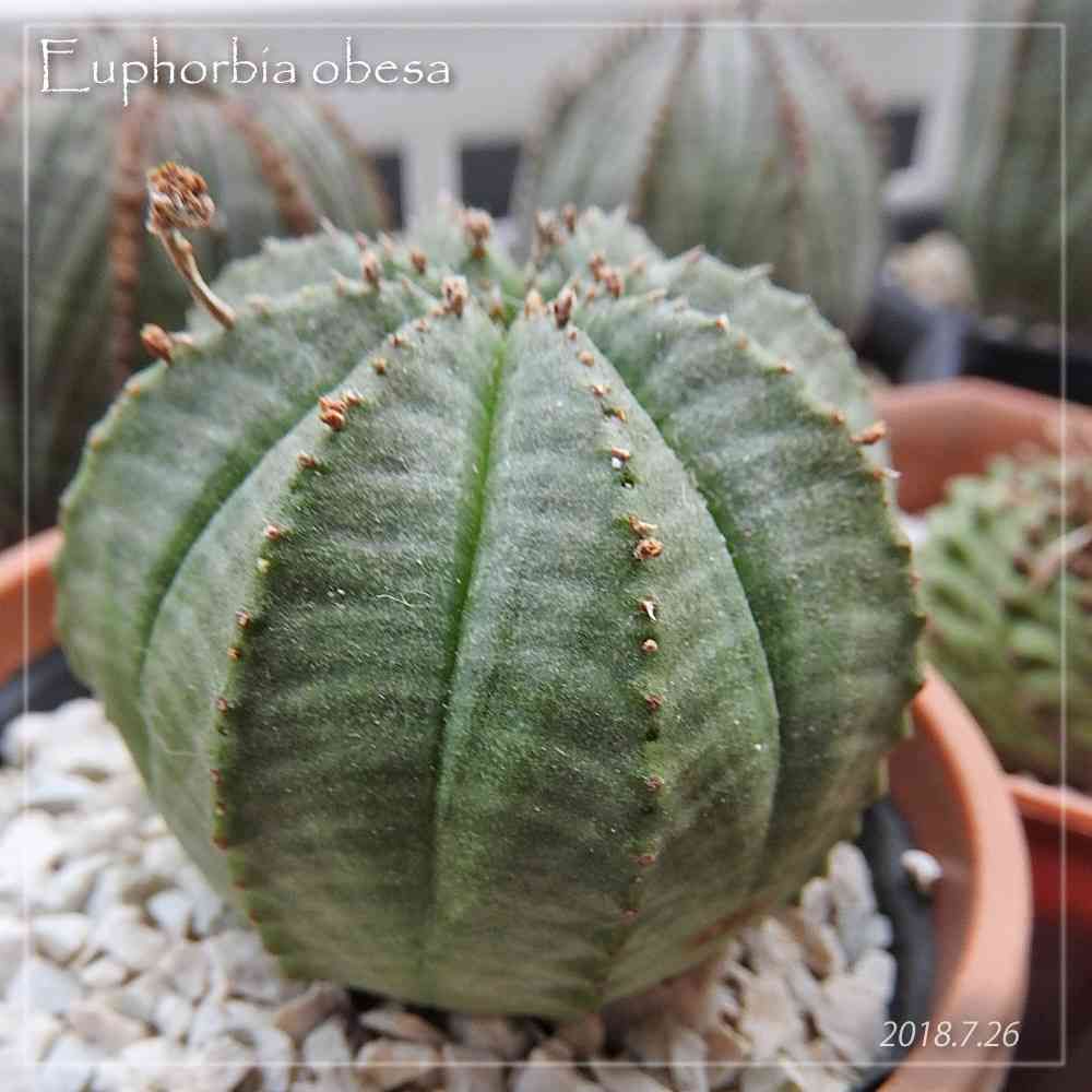 オベサ。他のより緑な感じ。買った時、稜のところが他のよりもぎざぎざだったので「ゴジラ丸」と名前をつけたけど、今ではあんまりゴジラじゃない。