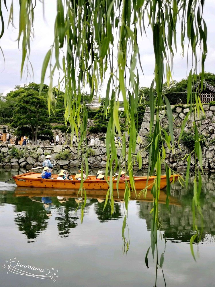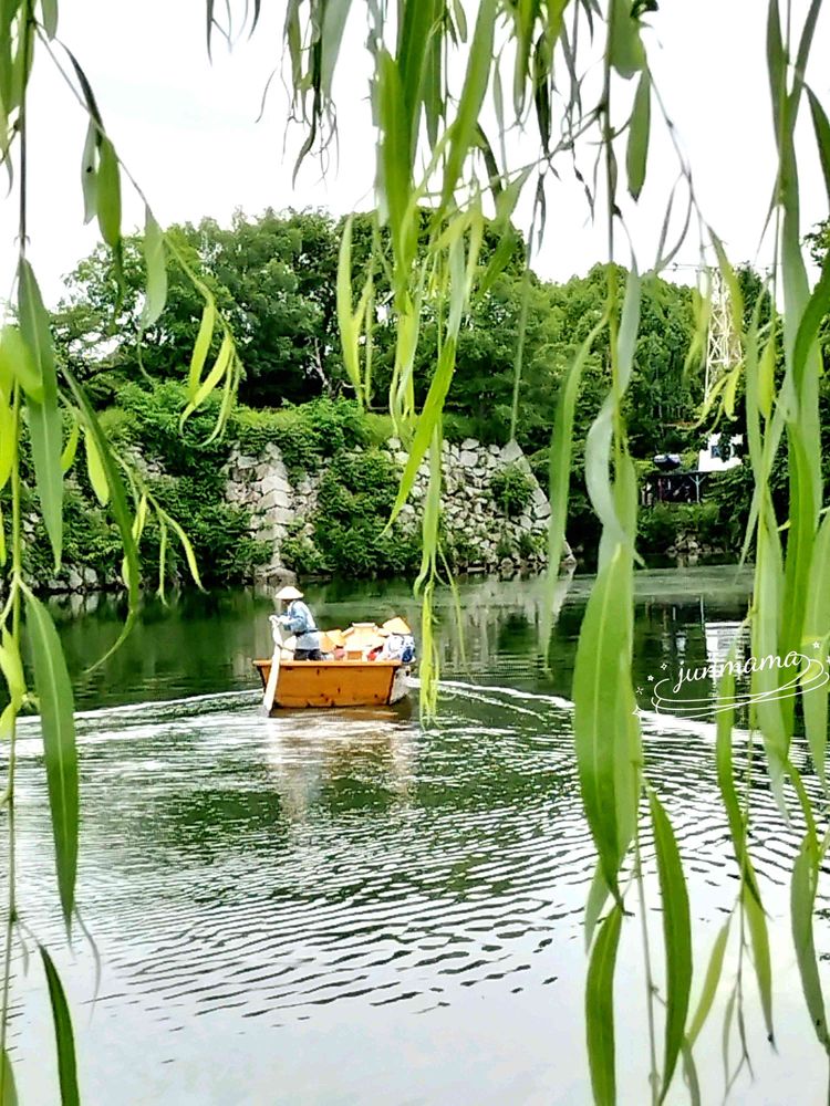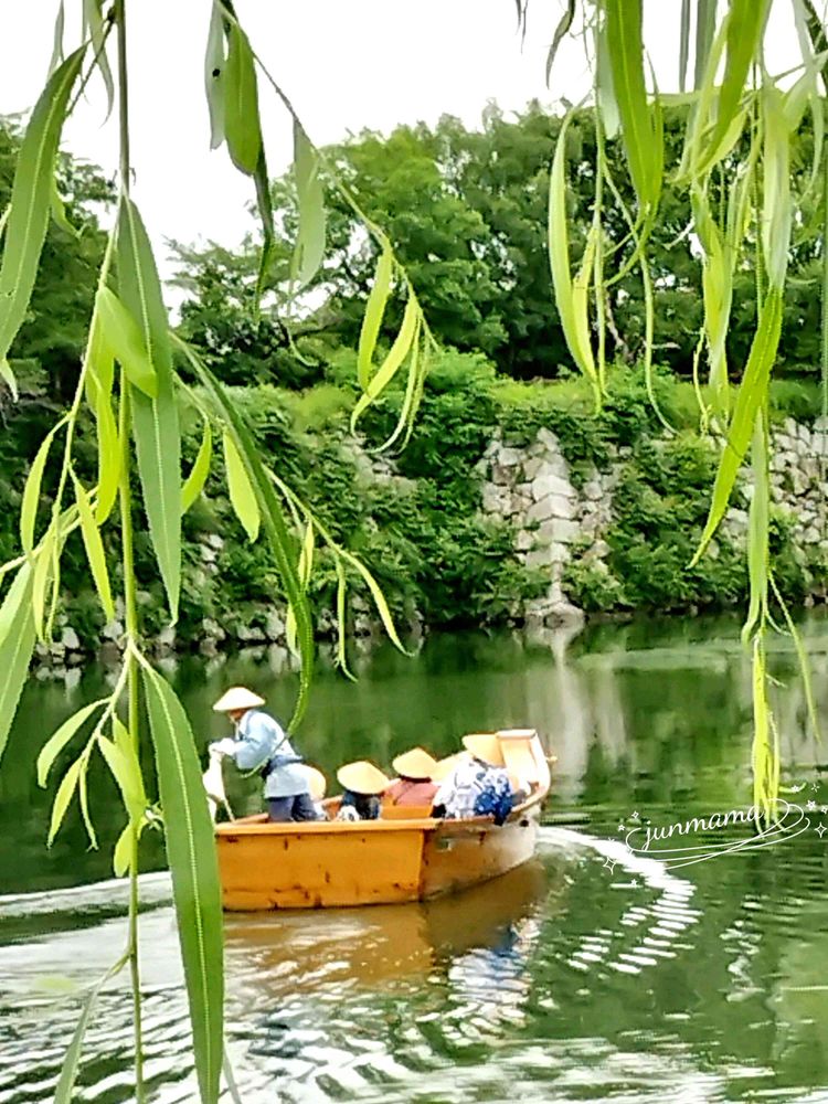 姫路城内堀の柳越しの和船 前回の和船投稿から5年ぶりです