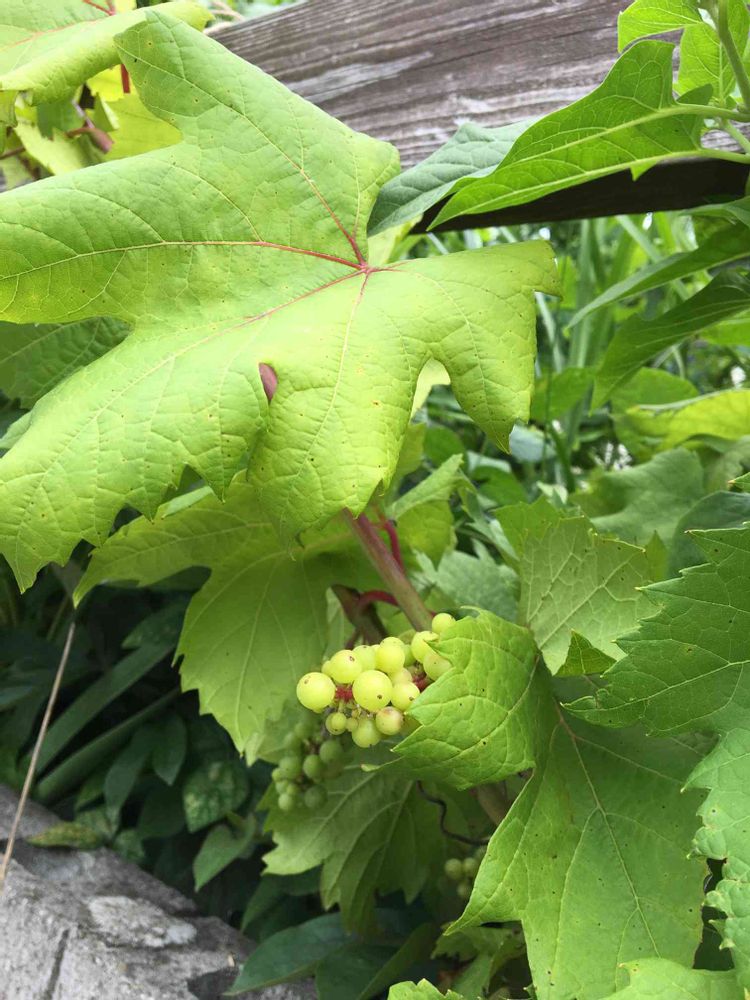 我が家の葡萄の木柵に絡ませてます。実をつけました。😋😁💕