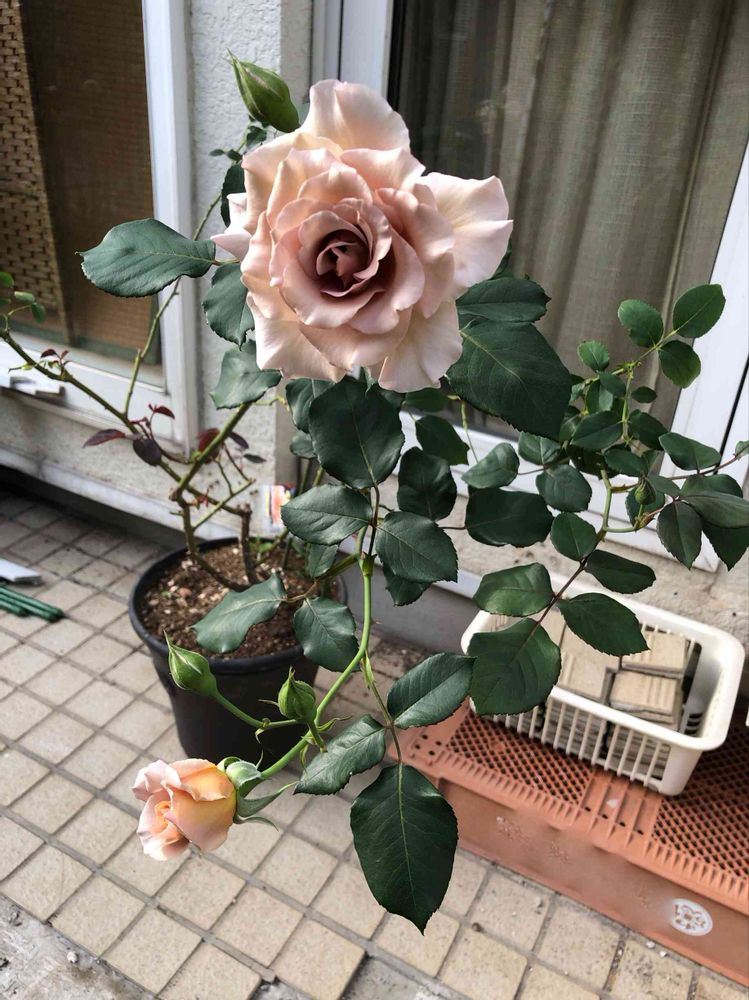 バラ🌹ジュリアさんの開花が進みました!今日のうちにこんなに開くとは思いませんでした。。。