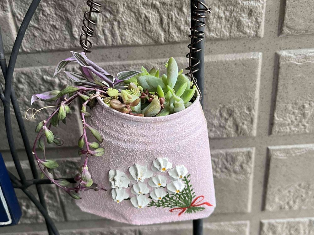 ①②③るるさんからいただいた素敵なリメ缶に寄せ植えしました。ありがとうございます︎💕︎