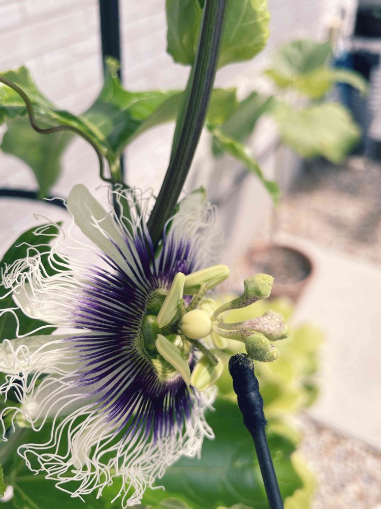 いちじくで傷心中のわたくしですが、パッションフルーツは順調です。朝、10時にパカッと咲いていたので、2つ目の人工授粉。