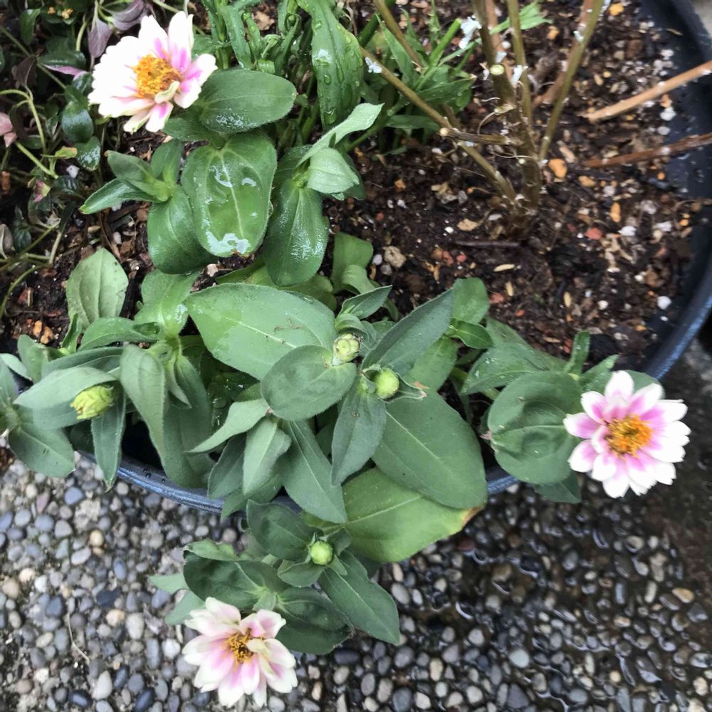 種まきしたジニアがいい加減大きくなってきたので、素人寄せ植えの一部に使ってみました。