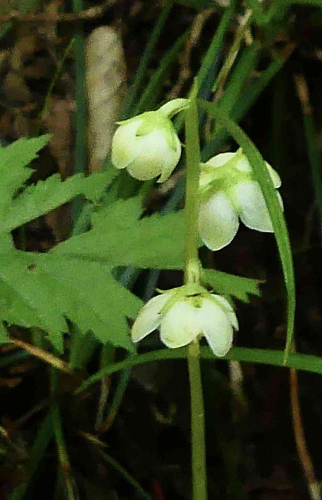 薄暗い斜面に、イチヤクソウが咲いていました。低山から里山あたりで見られるのはほぼこれですね。