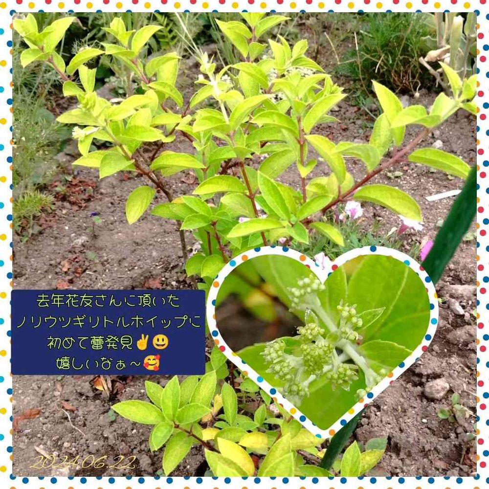 去年花友さんに頂いたノリウツギリトルホイップ、よ〜く見たら蕾がついてました〜✌️😃