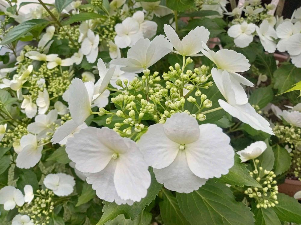 枝が長く伸び自然と枝垂れて広がって咲いています。