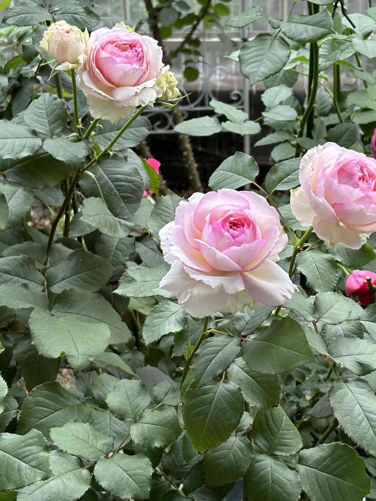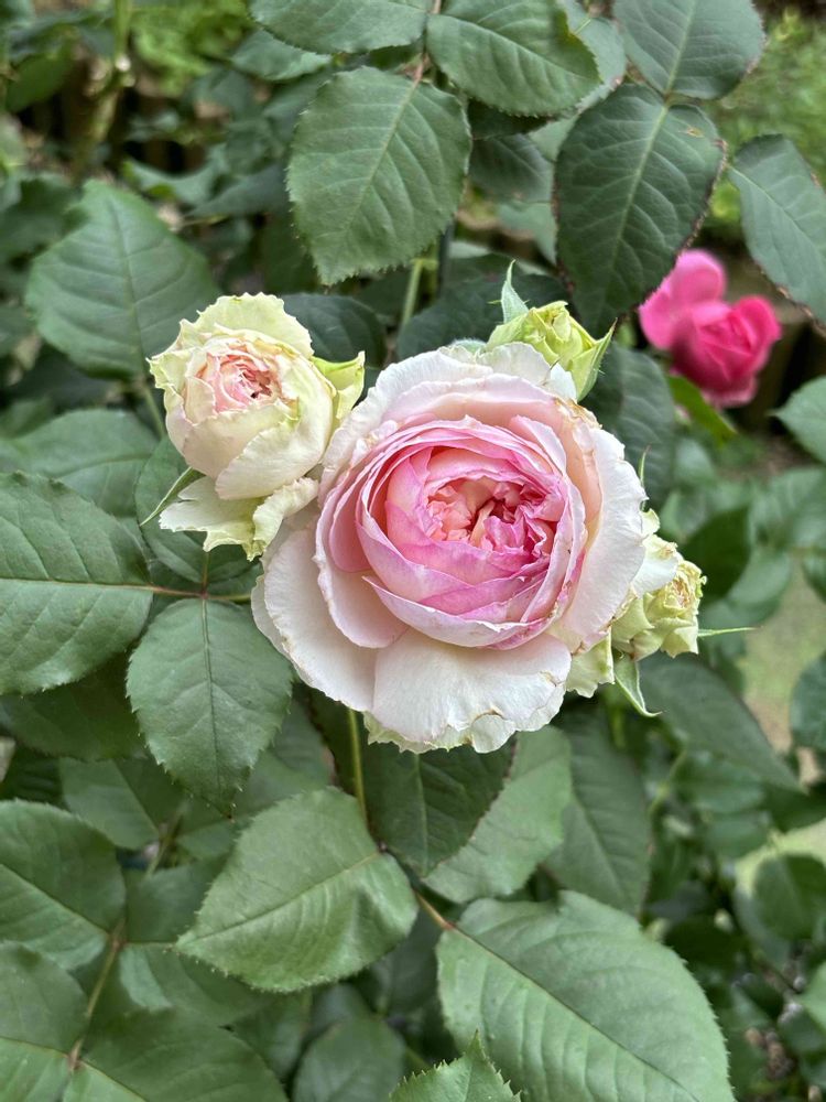 なるほど、一季咲きのバラは新しいシュートが出てきて密になって来ました