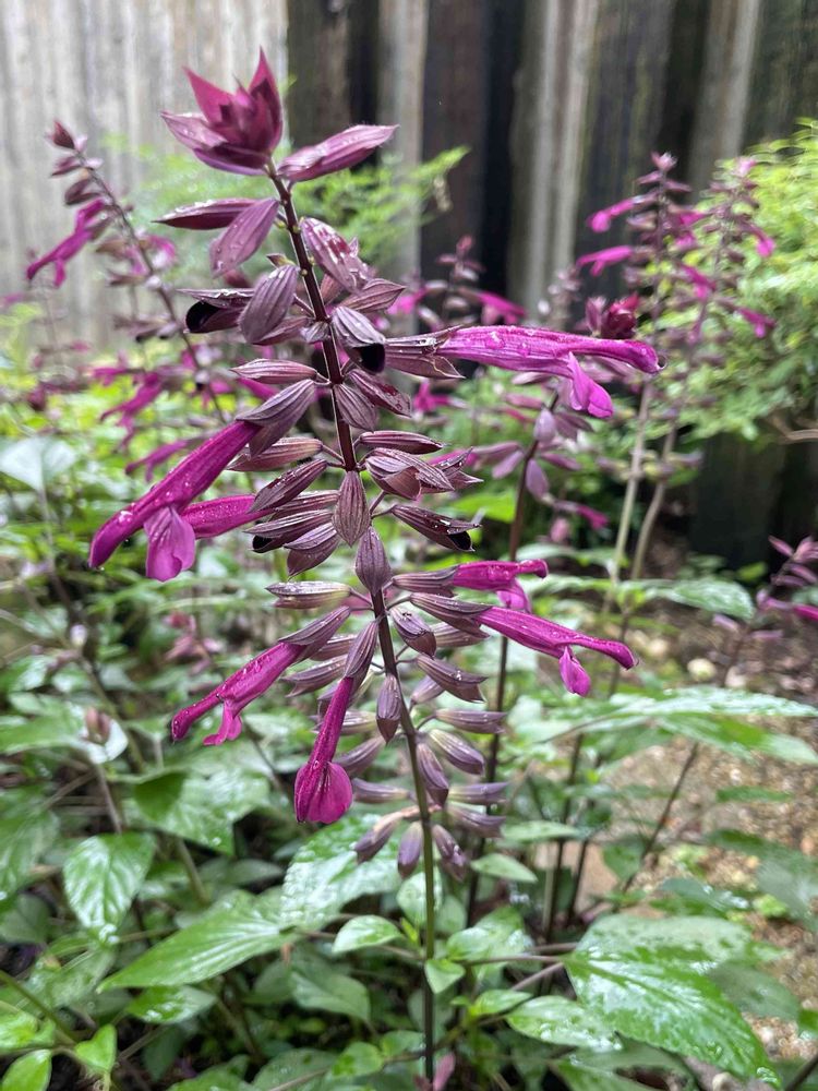 小雨に濡れてセージがいきいきとしています