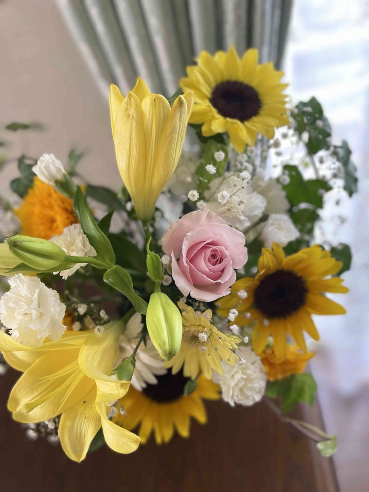 時期のお花を使ったアレンジは嬉しいですねー🌻🌸🌻🌼🌻