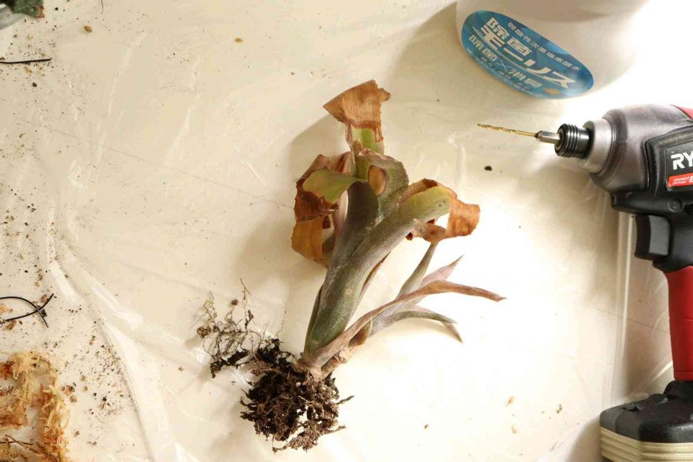 外へ行ったら風に飛ばされて···親株枯れて来てるし子株離そうかな~と👀アレ