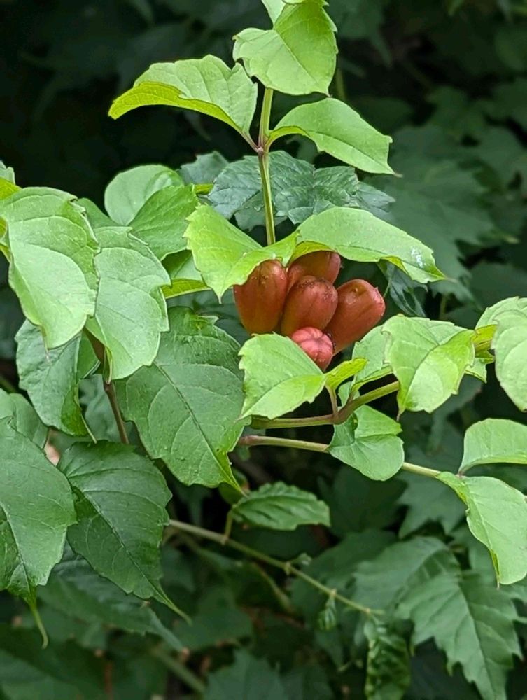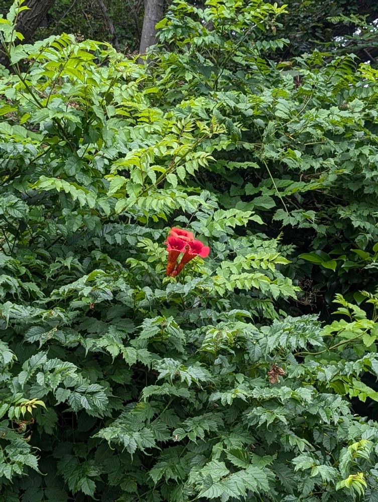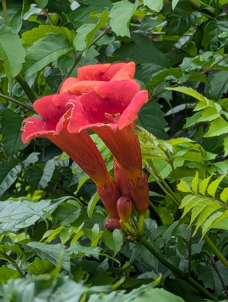 こんなに濃い色のノウゼンカズラ‼️ この辺りでは見たことありません 見られてうれしわ