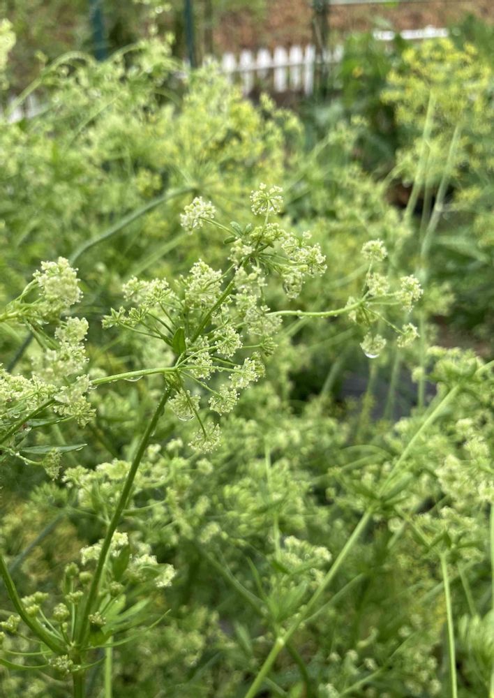 雨に打たれる花…ディル📱͙だと思っていたら、「セロリだよ〰ʅ(◞‿◟)ʃ」