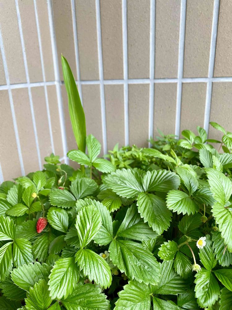 ワイルド🍓さんの中からカラーさん真っ直ぐに🌱を伸ばしています👀❣️