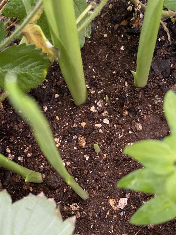 葉っぱを避けて覗いたら🌱🌱🌱🌱🌱🌱🌱沢山出てました🙆♀️