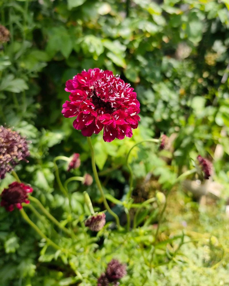 3年目のスカビオサルージュカーマイン。挿し芽してあちこちに増やして楽しんでます。
