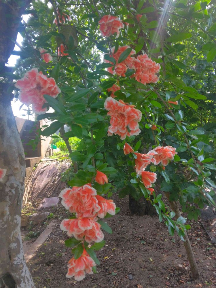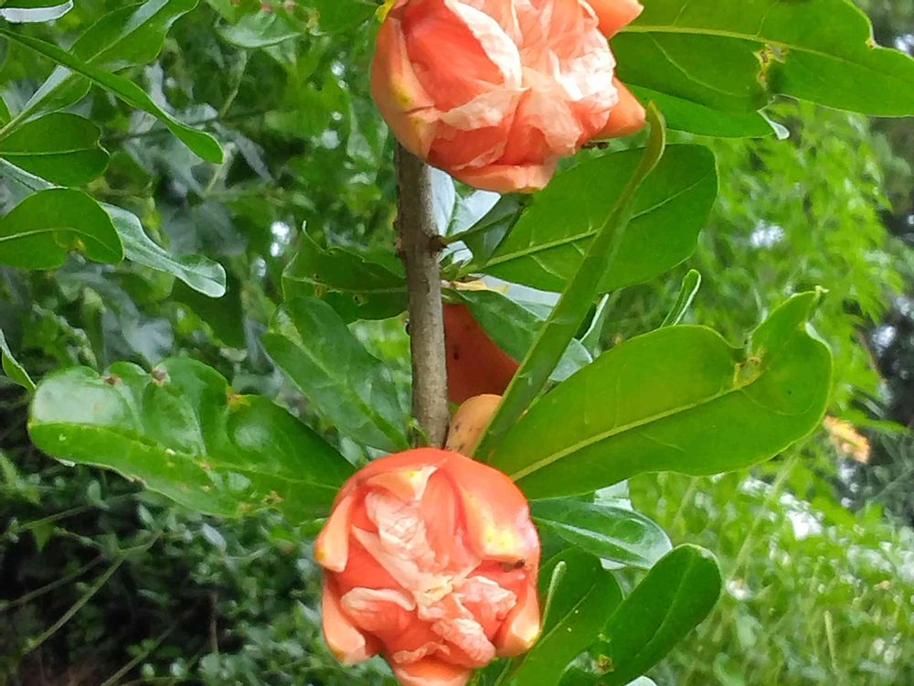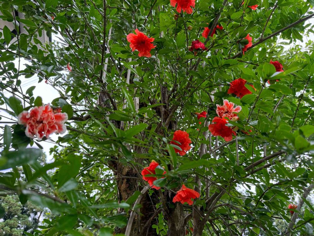 実家に帰ったらちょうど見頃の花ザクロ…💛